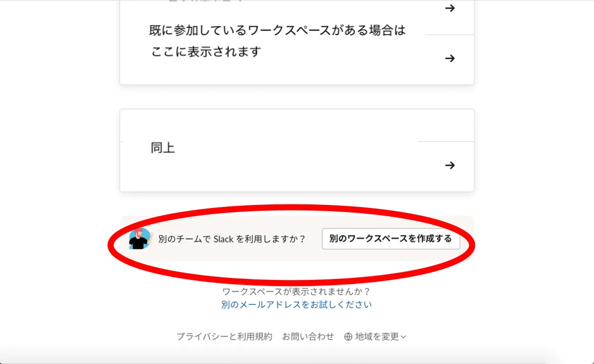 - ページ下部の「別のワークスペースを作成する」を押します.