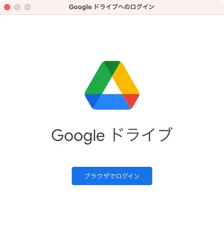 - 以下のウィンドウが表示されてGoogleドライブにログインできない場合は,Mac環境への再ログインをお試しください.
