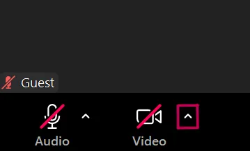 1. Press the up button next to the “Start Video (or Stop Video)” button displayed at the bottom of the meeting screen.