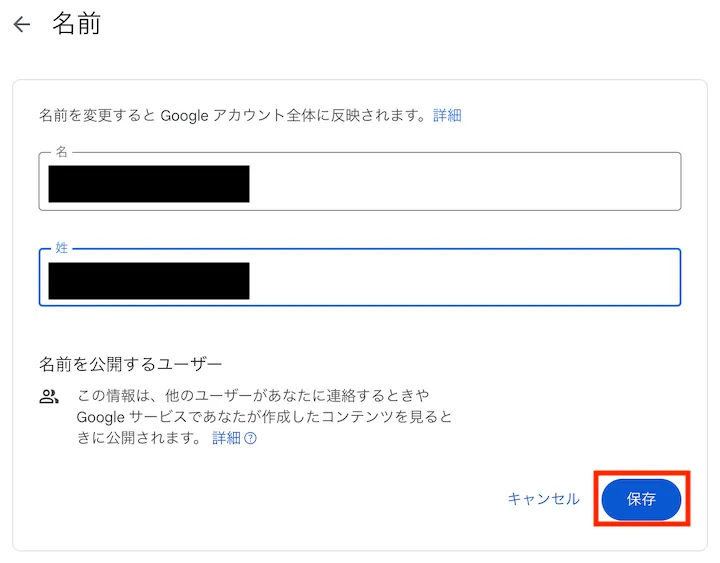 - 名前(姓・名)を入力して,「保存」をクリックしてください.