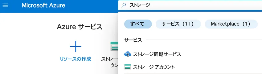 • Azureサービスの検索で“ストレージ”と検索すると表示される,ストレージアカウントを選択します.
