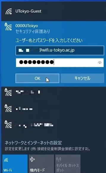 | パスワード | UTokyo Wi-Fiのパスワードを入力してください |