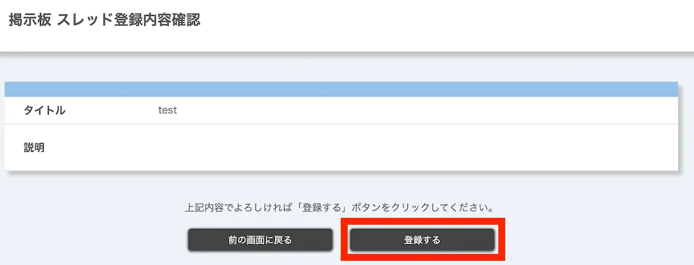 - 内容を確認の上,「登録する」ボタンを押してください.「登録が完了しました」と表示されれば,スレッドの登録が完了しています.