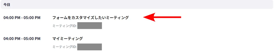 2. 自分のスケジュールしたミーティングが,リストとして表示されます.フォームの項目をカスタマイズしたいミーティングの名前を押してください.