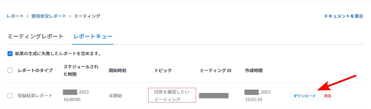 8. 集計結果を見たいミーティングを探し,右側にある「ダウンロード」ボタンを押してください.