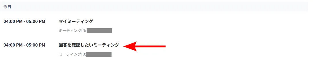 2. 自分のスケジュールしたミーティングが,リストとして表示されます.登録者の回答を閲覧したいミーティングの名前を押してください.